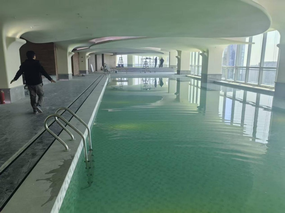 ด้วยการออกแบบที่สวยงามแบบตะวันออกแบบเดียวกัน พื้นที่สระว่ายน้ำมีหน้าต่างสูงจากพื้นจรดเพดานเต็มผนังพร้อมวิวแม่น้ำ Xiangjiang และ Orange Isle โดยตรง ในตอนกลางคืน แขกสามารถเพลิดเพลินกับแสงไฟในเมืองและดอกไม้ไฟเหนือ Orange Isle ทำให้ที่นี่เป็นหนึ่งในจุดถ่ายรูปยอดนิยมของโรงแรม